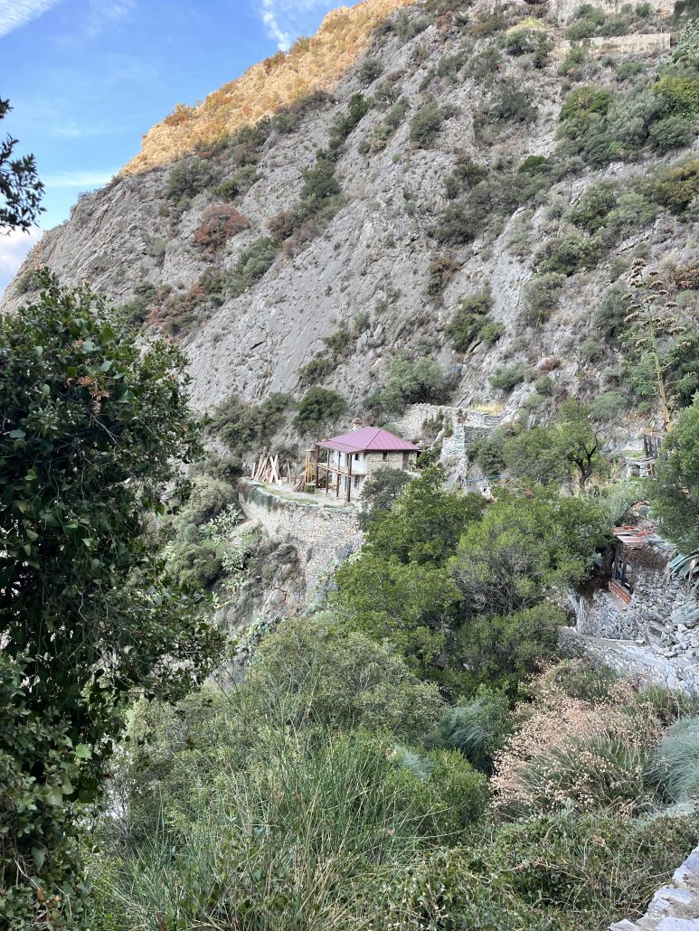 Not many people were left on the ferry as we started to get closer to our destination, as not many people are invited, or desire, to head so far south. Father S met us at the tiny jetty, his presence serene yet purposeful, and his face showing the toils of his dedicated life. We exchanged few words, for here, conversation is measured and meaningful; in time, he led us up the steep slope along a winding path through cypress and olive trees, to his solitary cell and the groves beyond, which would be our home for the next five days.